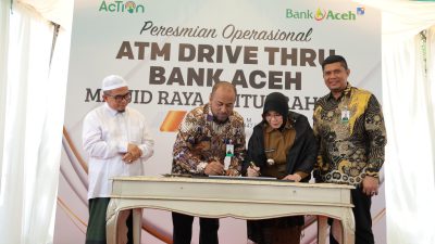 Banda Aceh ( Aceh dalam berita ) Senin 2-3-2026 PT Bank Aceh Syariah meresmikan fasilitas ATM Drive Thru terbaru yang berlokasi di kawasan Taman Kota Banda Aceh. Peresmian yang berlangsung khidmat pada, dihadiri dan oleh Walikota Banda Aceh, Ibu Illiza Saaduddin Jamal, dan jajaran direksi Bank Aceh.