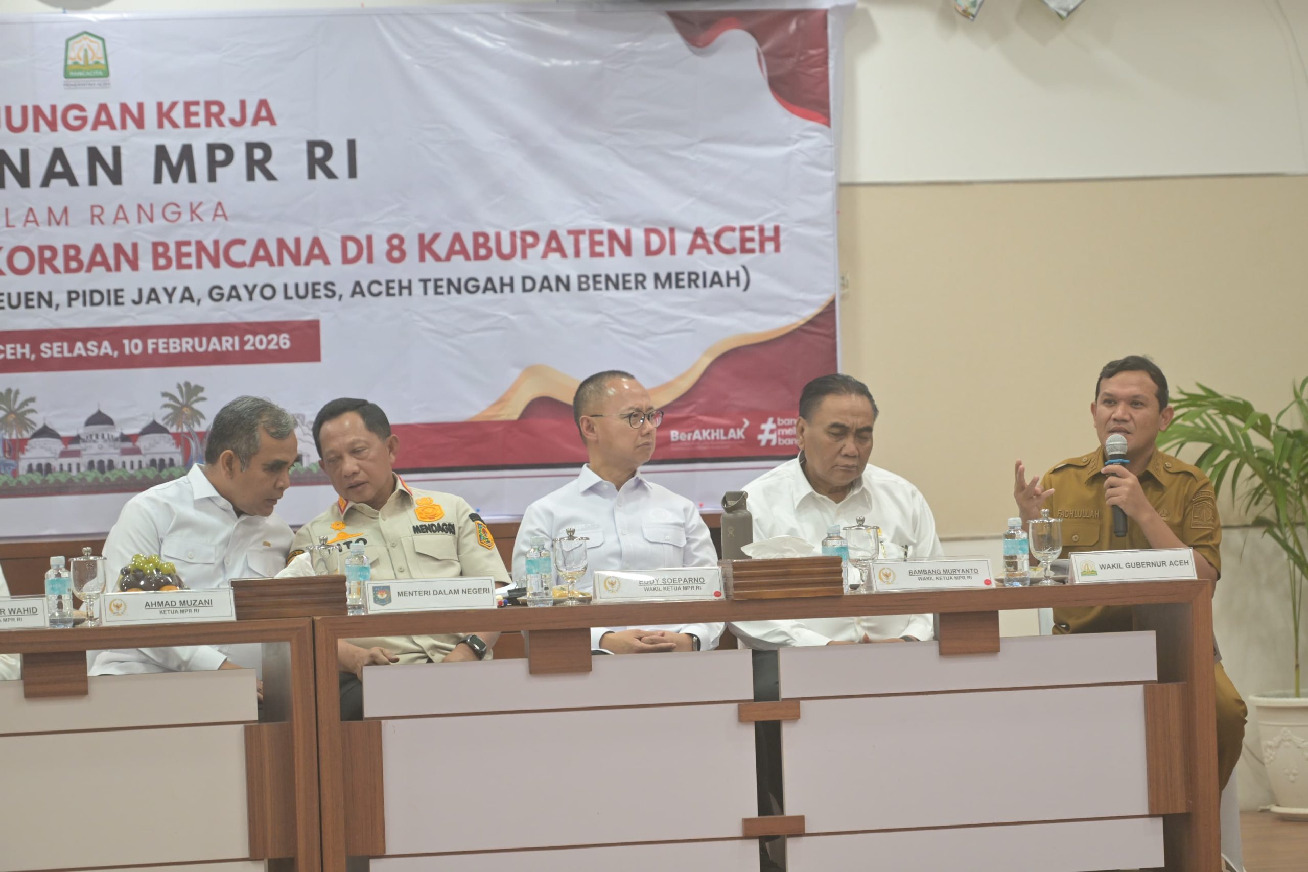 Banda Aceh ( Aceh dalam berita ) Selasa 10-2-2026 Wakil Gubernur Aceh, Fadhlullah, meminta percepatan penyaluran berbagai bantuan dan program pemulihan bagi korban banjir dan longsor saat menerima kunjungan pimpinan dan anggota MPR RI di Kantor Gubernur Aceh.