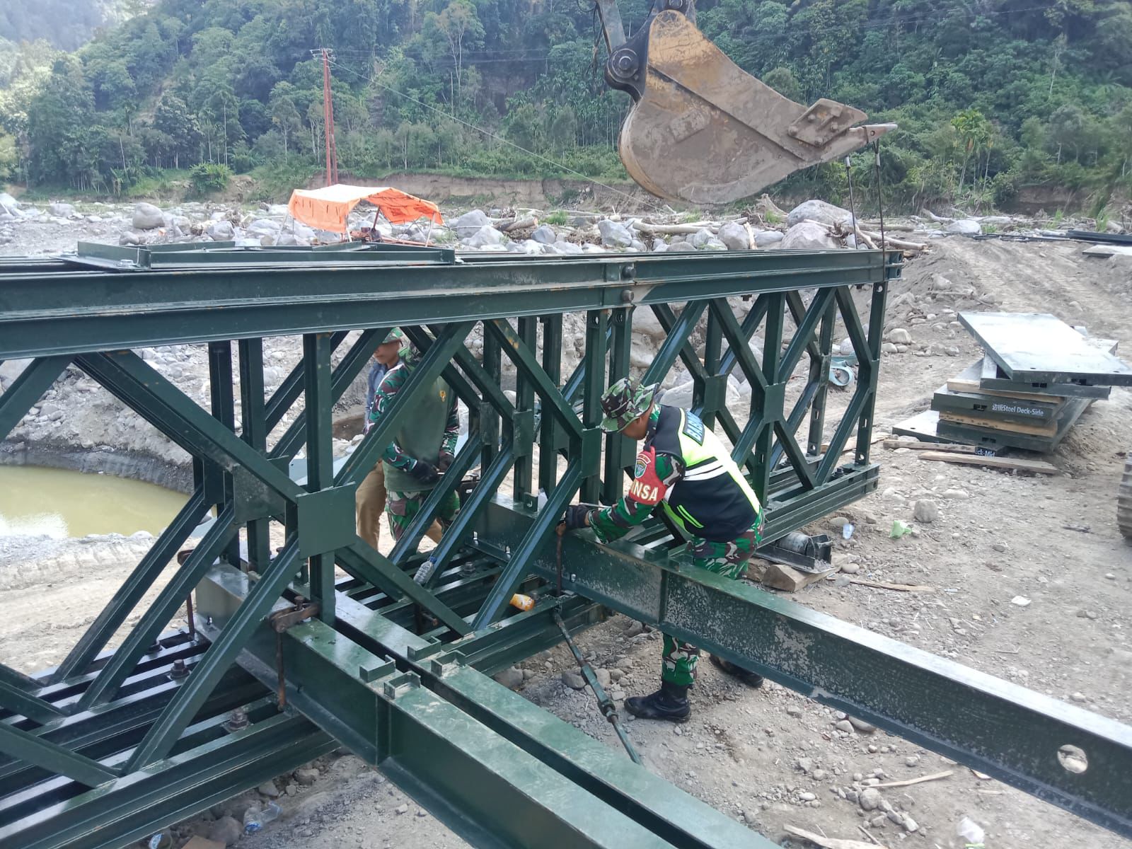 Personel Kodam IM Percepat Pembangunan Jembatan Bailey di Desa Bergang Aceh Tengah, Progres Capai 44 Persen
