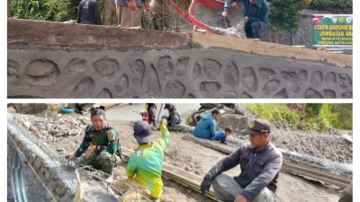“Pemasangan balok beton di kanan dan kiri jembatan ini dilakukan sebagai upaya memperkokoh struktur, sehingga jembatan dapat digunakan dengan aman oleh masyarakat,” ujarnya.