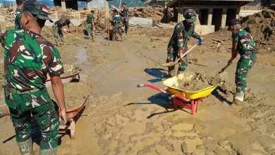 Ia menambahkan, dengan keterbatasan tenaga dan peralatan yang dimiliki warga, bantuan dari TNI sangat membantu mempercepat proses pembersihan pascabencana.