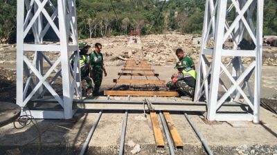 “Saat ini kami fokus pada pemasangan gelagar lintang serta perapian sling agar konstruksi benar-benar kokoh dan aman. Kami optimis dengan kerja sama yang solid, target penyelesaian pada Februari 2026 dapat tercapai,” ujarnya.