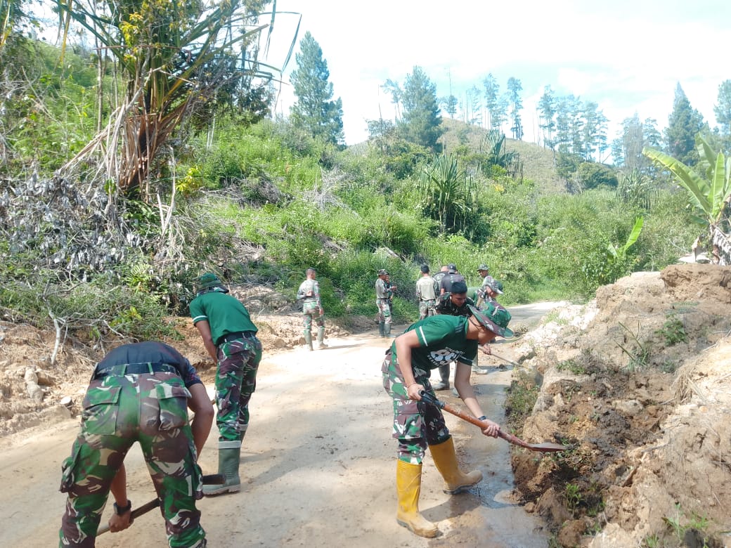 Aceh Tengah ( Aceh dalam berita ) Personel TNI dari Satuan Kodim 0106/Aceh Tengah bersama Personel Yonif TP 854/Dharma Kersaka bergerak cepat melakukan pembersihan material longsor yang menutupi badan jalan pada ruas Takengon–Bintang, tepatnya di Dusun Kalang, kawasan Ujung Sere, Kecamatan Lut Tawar, Kabupaten Aceh Tengah, Rabu (11/3/2026).