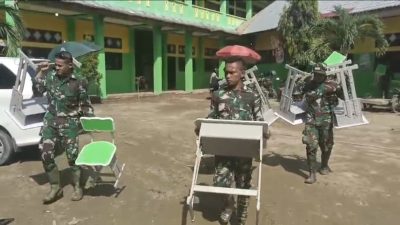 “Kami senang sekali bisa sekolah lagi. Terima kasih bapak-bapak TNI yang sudah membersihkan sekolah kami,” ucap Ulfa polos.
