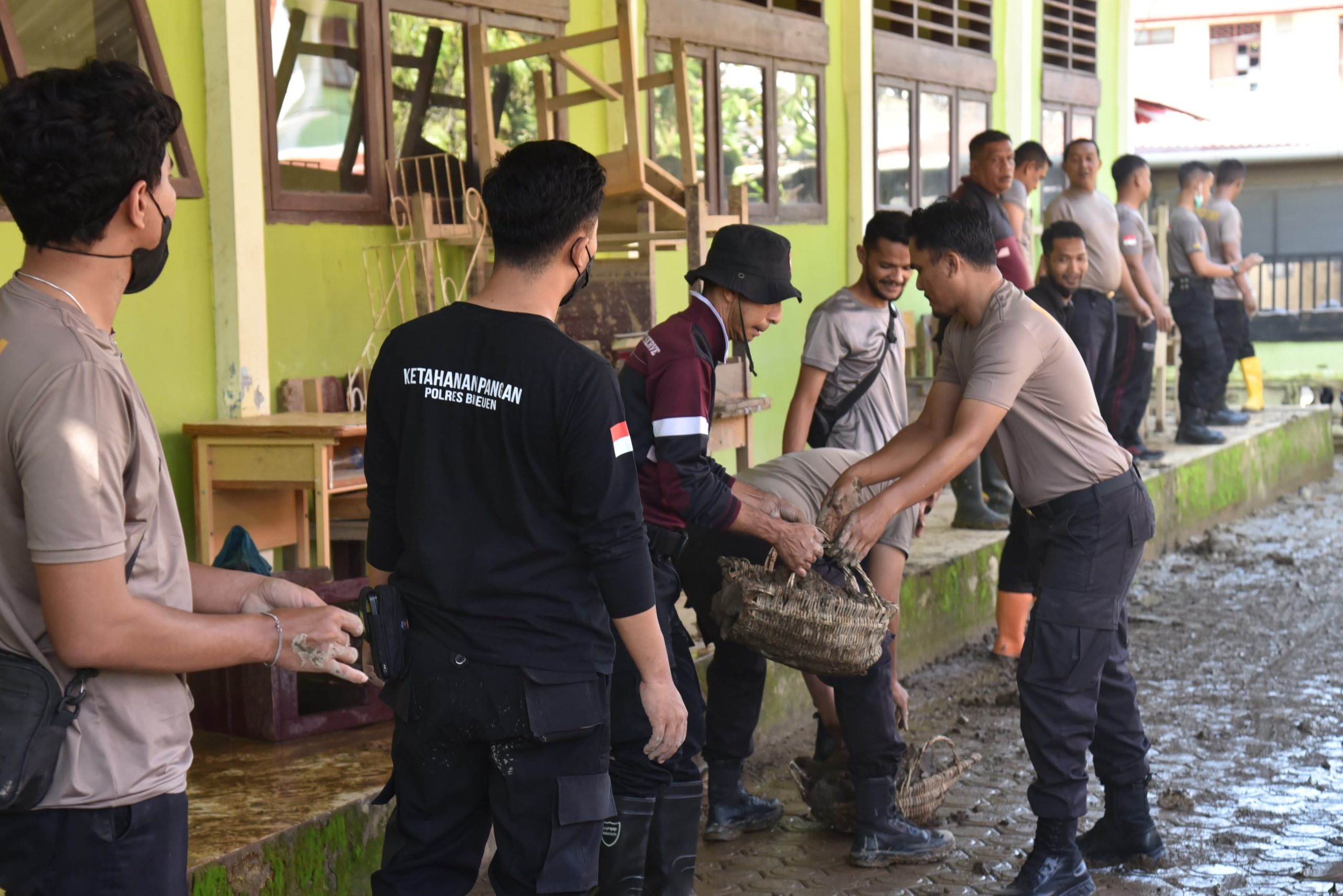 Kabid Humas Polda Aceh, Kombes Pol. Joko Krisdiyanto, S.I.K., mengatakan bahwa kegiatan pembersihan dilakukan untuk membersihkan lingkungan sekolah dari sisa lumpur dan material yang terbawa banjir.
